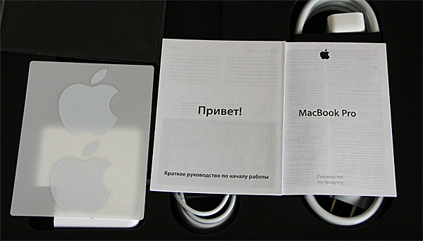 После процесса вскрытия сразу виден ноутбук, который нагло подмигивает белым яблочком.
