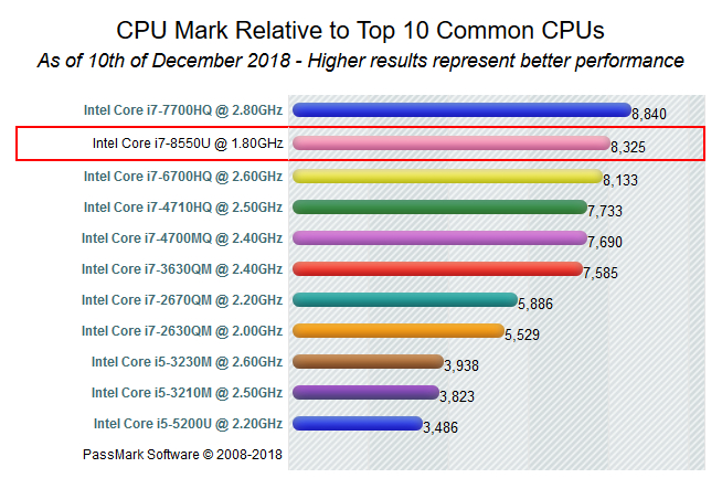 На всякий случай пробил по "Яндекс.Маркету", могу ли я получить что-то похожей стоимости другого производителя. На платформе Core i7-8550U (i7-8550U и i5-8250U - это 15-ваттные ноутбучные низковольтажные платформы) больше вообще ничего нет.