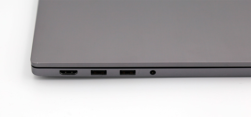 На левом торце - полноразмерный HDMI, два порта USB 3.0 и разъем для наушников. Первоначально мне показалось, что USB 3.0 - чересчур тугие, флешка или кабель в них залезали с трудом. Однако они довольно быстро разработались, и кабели уже вставлялись совершенно нормально, без усилий.