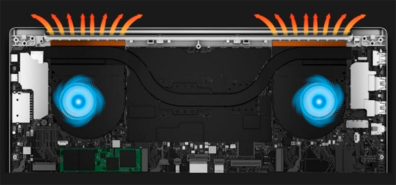 Не нравится такое решение, будет проблема с перегревом если держать ноутбук на коленях во время работы, что например для меня характерно. Что вместе с глянцевым экраном удерживает от покупки данного девайса. Да у экрана еще и какое-то стеклянное покрытие, что конечно выглядит круто, но как-то опасно хрупко, плюс добавляет лишний вес. Хотя в остальном у этого ноута все выглядит отлично, с зарядкой через usb type-c воообще пока мало что можно найти.