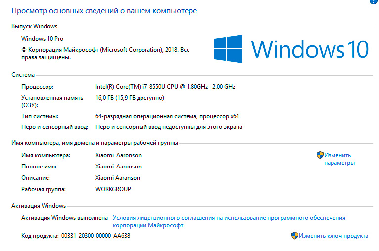 Процессор: Intel Core i7-8550U, 4-ядерный