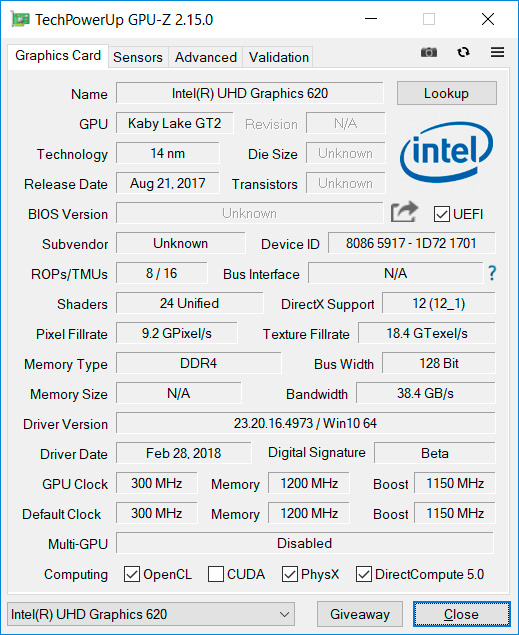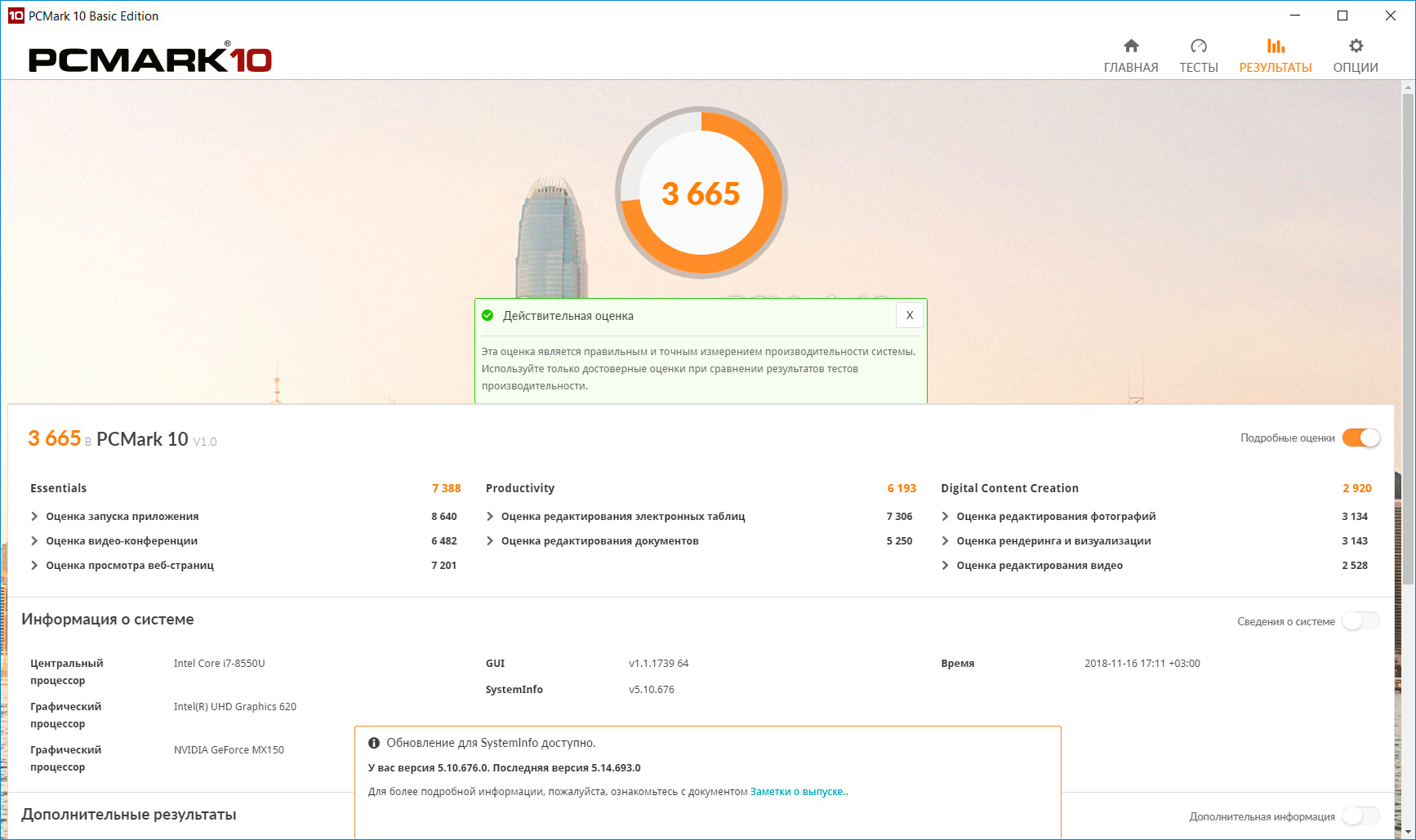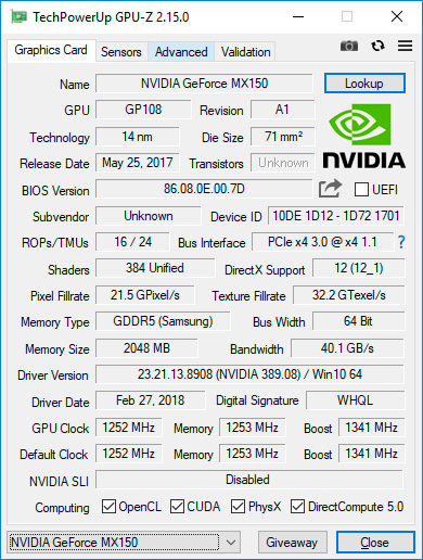 Графическая система: Intel UHD Graphics 620 (встроенная) и NVIDIA GeForce MX150 (дискретная)