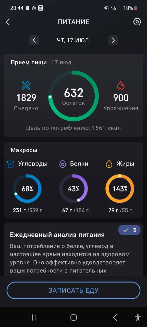 недавно в amazfit подключили счетчик калорий через ИИ ! плюс это все очень легко вносить через фото , голосом или вручную ! и это все синхронизируется с упражнениями .