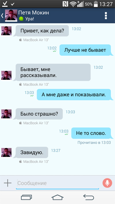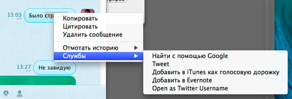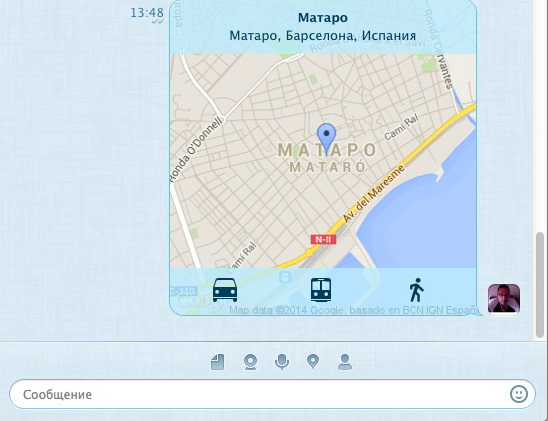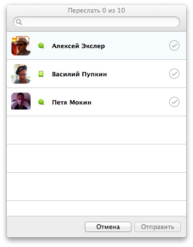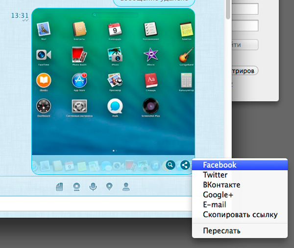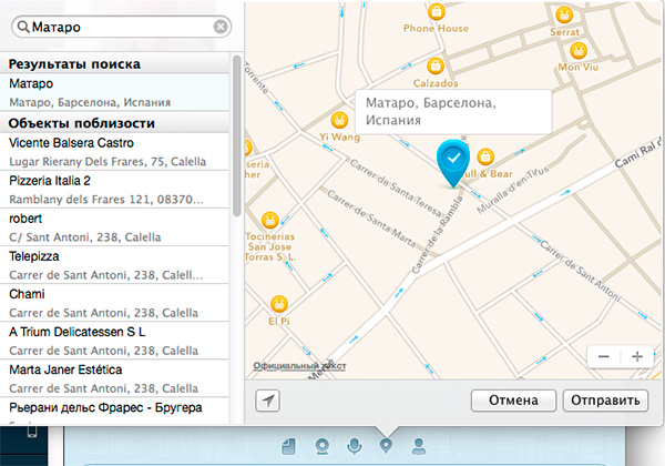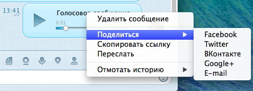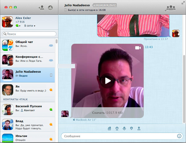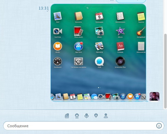 Клиент под Mac - даже более продвинутый, чем клиент под Windows. В нем есть практически все те же возможности, что и в смартфонных клиентах, включая отправку видео и фото с камеры, а также отправка местоположения или нужного адреса.