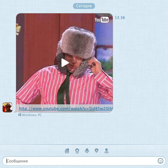 А ссылка на ролик YouTube приходит в виде предпросмотра, на который можно нажать, чтобы открыть соответствующий ролик на YouTube.