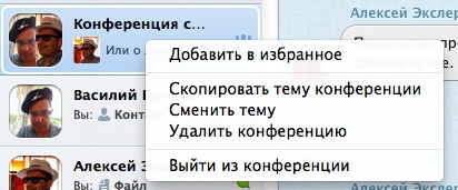 С конференцией можно: приглашать или удалять участников, менять тему, покидать конференцию, удалять сообщения или удалять саму конференцию.