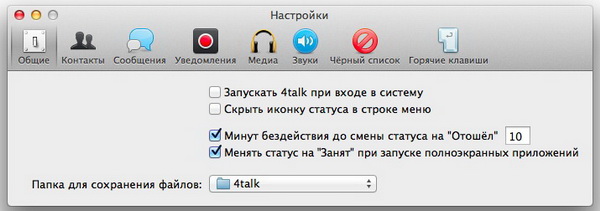 Общие настройки. Если вы хотите, чтобы 4talk автоматически запускался при старте системы, отметьте соответствующий чекбокс.