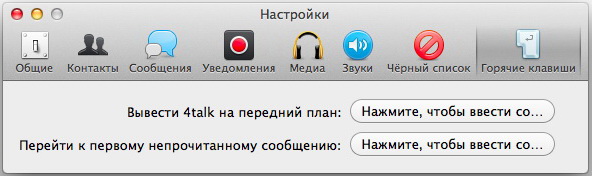 Если вы постоянно пользуетесь 4talk, то удобно включить некоторые горячие клавиши, которые будут действовать и в некоторых других программах, для того чтобы, например, быстро перейти к первому непрочитанному сообщению.