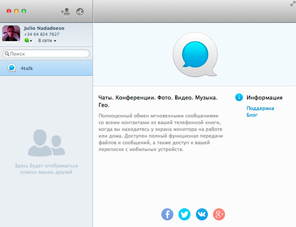 Облачный мессенджер 4talk - клиент под Mac (OS X)