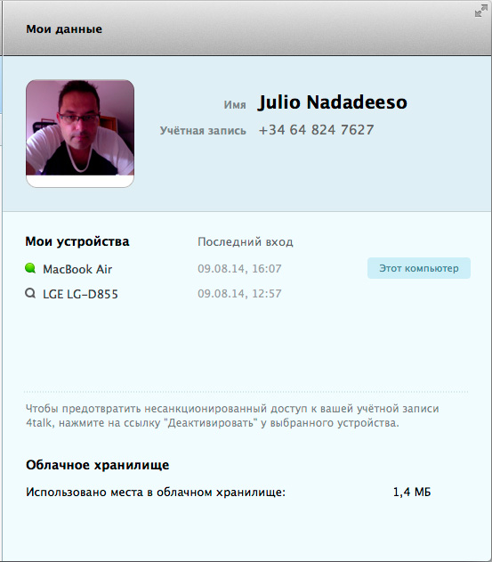 В профиле фиксируются все устройства, на которых был зарегистрирован данный аккаунт 4talk (то есть данный номер телефона).