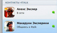 В списке ваших контактов отмечены все, кто использует данный мессенджер. Причем фамилия-имя (ник) контакта выводятся так, как они у вас записаны в адресной книге. То есть если, например, Петя Мокин у вас записан как Петруччо - именно так он и будет называться в 4talk.
