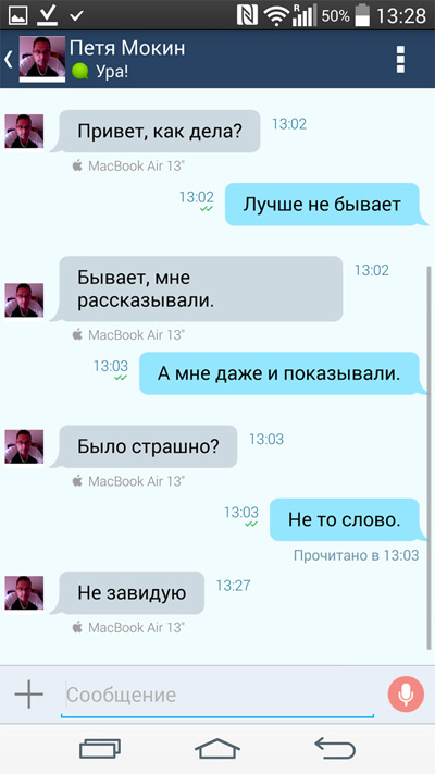 В чате обязательно указываются время отправки сообщения, время прочтения сообщения и устройство, с которого отвечает абонент. Причем если щелкнуть по названию устройства - откроются все предложения по его продаже в "Яндекс.Маркете".
