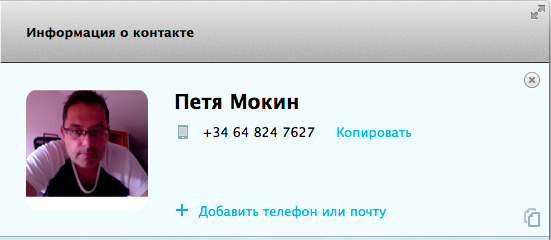 Информация о контакте - в удобном виде выводится информация о контакте, где ее можно редактировать и добавлять новые данные.