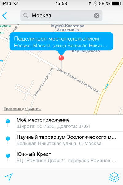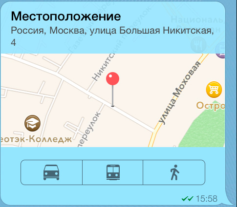 При отправке своего местоположения теперь еще появляется список ближайших объектов, из которых можно выбрать нужный.