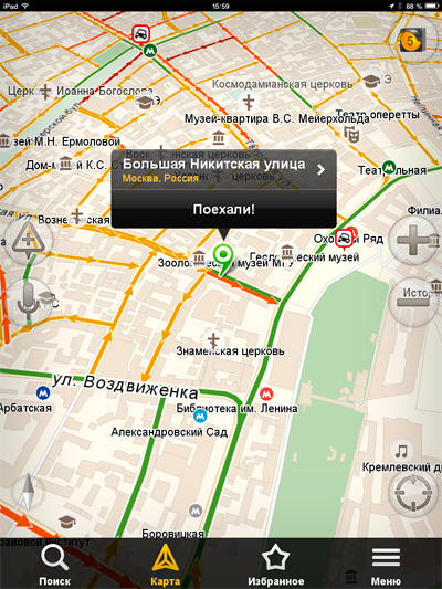 Нажал на кнопку "Автомобиль" - и получил маршрут в "Яндекс.Навигаторе".