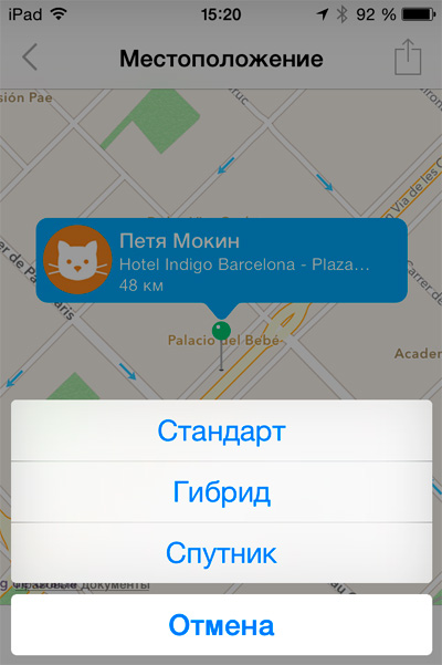 В режиме просмотра местоположения теперь доступны три вида: стандартный, гибрид и спутник.