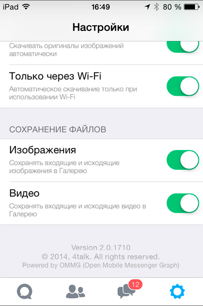 Прежде всего, у 4talk полностью сменилась платформа: разработчики перешли от XMPP в сторону собственного сервера и разработали свой собственный протокол, учитывающий особенности мобильного доступа в Сеть и работы на медленных соединениях. В результате 4talk стал заметно быстрее и там снизилось потребление трафика, который и раньше-то был хорошо оптимизирован. Также он стал очень устойчиво работать в условиях плохих интернет-каналов.