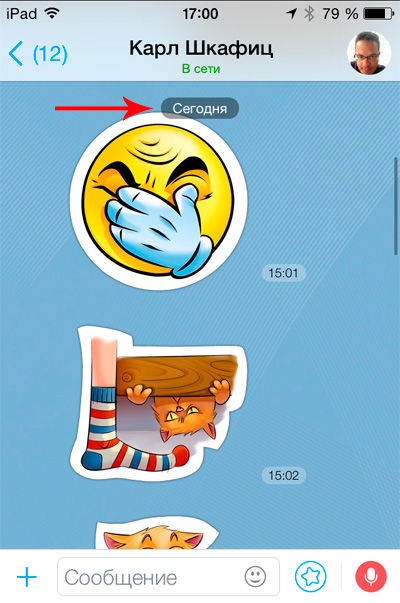 При прокручивании длинной беседы сверху изображается плавающая дата просматриваемых сообщений - удобно искать нужную дату.