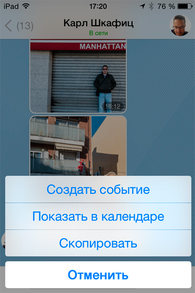 Даты и номера телефонов в сообщениях теперь подсвечиваются: при нажатии на дате можно создать запись в календаре, при нажатии на телефон начинается его набор.