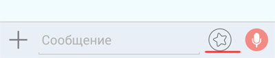 Значок стикера в телефонных версиях располагается слева от значка микрофона.