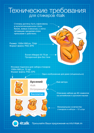 Разработчики разрешили всем желающим создавать свои наборы стикеров (как платные, так и бесплатные) и размещать их в магазине. Единственное - стикеры должны удовлетворять вот этим техническим требованиям (кликабельно).