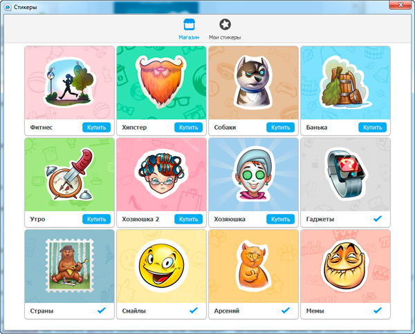 Также там доступен магазин стикеров, где можно скачать или прикупить какие-то дополнительные наборы.