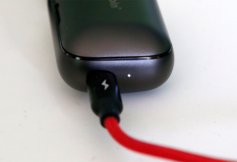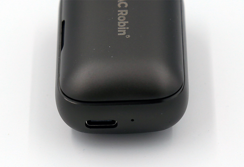 На правом торце кейса располагается зарядный порт Type-C, рядом с ним - светодиод.