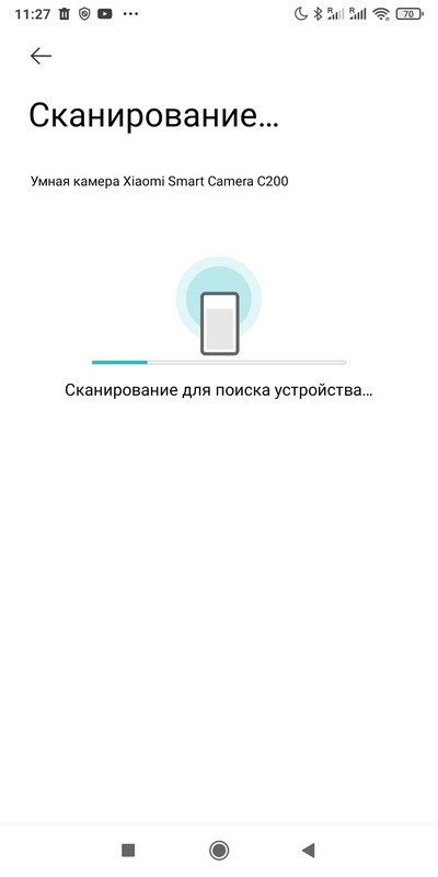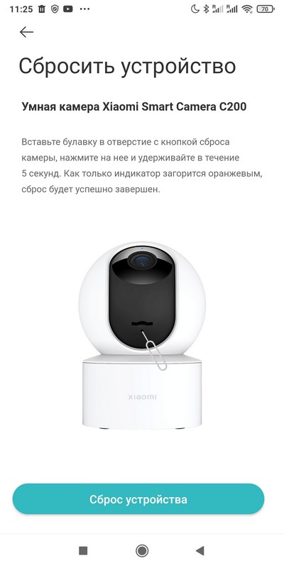 Перед обнаружением камеры приложение предлагает сделать сброс, после этого ищет устройство.