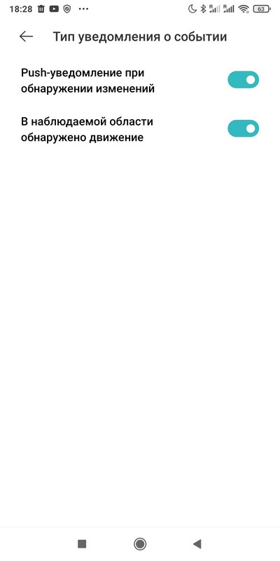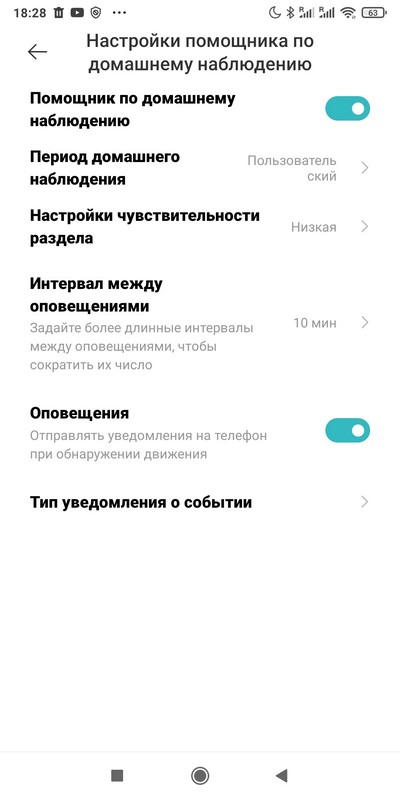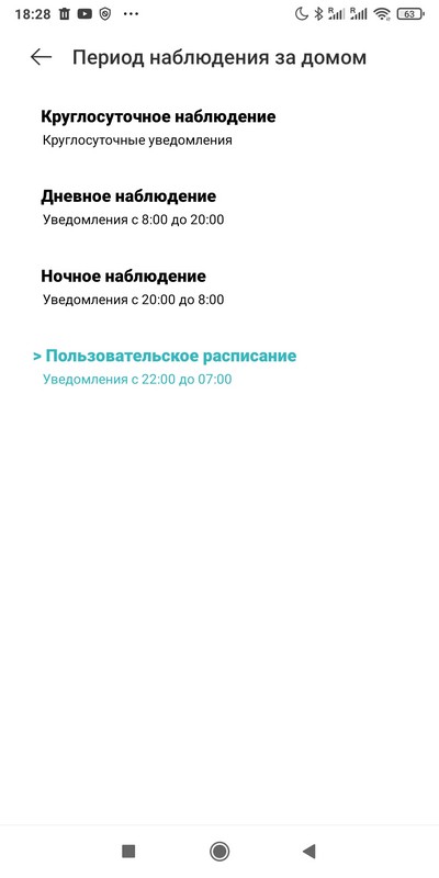 Настройка периода наблюдения (в этот период могут присылать уведомления об обнаруженных изменениях и движении).