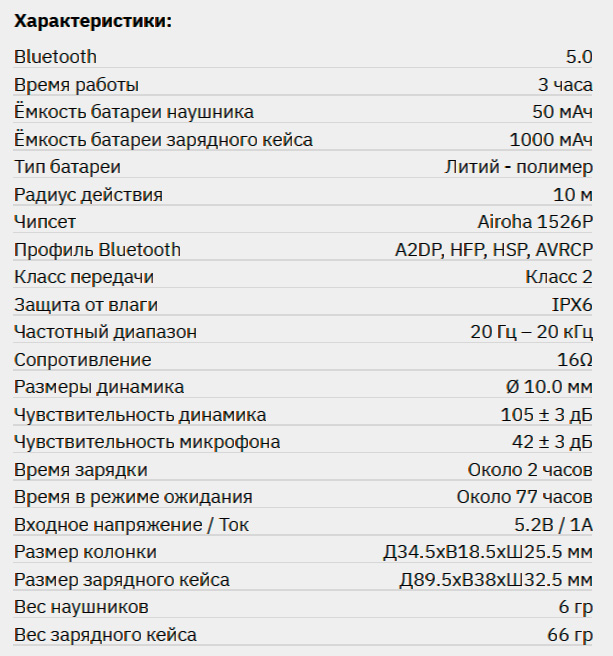 Емкость аккумулятора каждого наушника - 50 мА·ч, так что от кейса наушники можно будет зарядить где-то раз восемь (учитывая неизбежные потери), что уже хорошо.