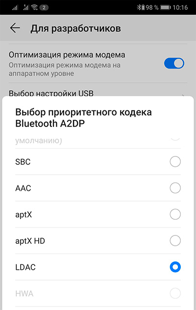 Аудиокодеки: SBC, AAC, aptX, aptX HD, LDAC