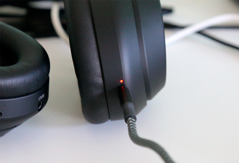 Время автономной работы заявлено до 30 часов с шумоподавлением и до 38 часов без оного. Я для теста включил режим "умного" шумоподавления и поставил наушники воспроизводить музыку со смартфона. О низком заряде батареи наушники стали сообщать после 29 часов прослушивания, так что похоже, что именно столько наушники и живут без подзарядки, этого будет вполне достаточно для любых применений. И, конечно же, намного удобнее, когда у наушников собственный аккумулятор: у тех же Bose QuietComfort 25 активный шумодав питается от батарейки и сколько раз я оставался без шумодава, когда просто забывал после поездки его выключить.
