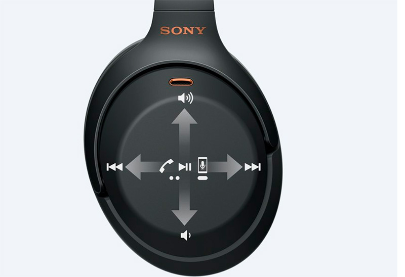 Внешняя площадка правой чаши является сенсорной панелью управления с традиционными жестами и нажатиями: вверх-вниз - громкость, влево-вправо - предыдущий/следующий треки, двойное постукивание - ответ на звонок либо положить трубку или остановить/возобновить воспроизведение, длинное нажатие - вызов голосового помощника на смартфоне.