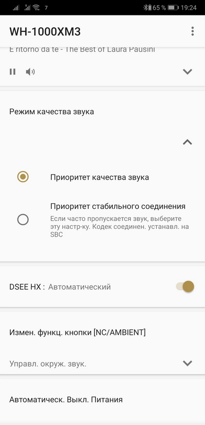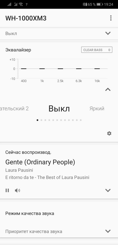 Здесь - именно отличное качество по беспроводному соединению, просто класс! Также замечу, что подстройка звучания через приложение Sony Headphones Connect дает вполне интересные результаты и с этим имеет смысл поэкспериментировать.