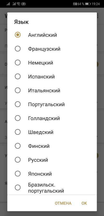 Язык голосовых уведомлений - хоть русский, хоть бразильск. португальский.