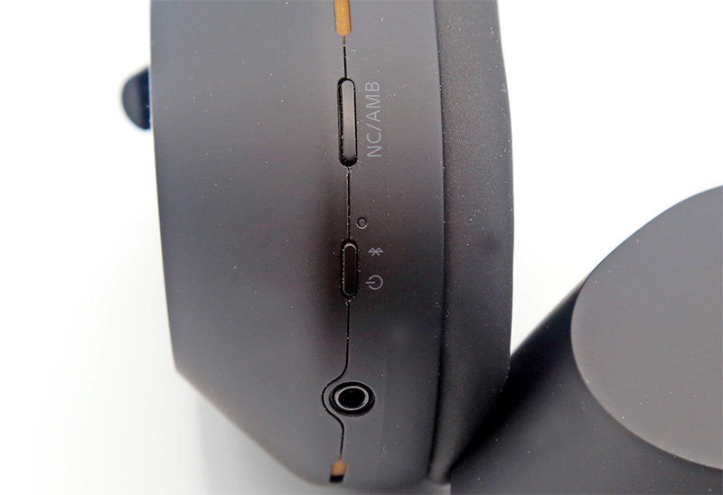 На нижней грани левой чашки наушников располагается аудиовыход для проводного подключения, кнопка питания (при длинном нажатии - перевод в режим сопряжения, о чем будет сигнализировать соответствующий светодиод, расположенный рядом), кнопка включения шумодава и переключения его режимов.