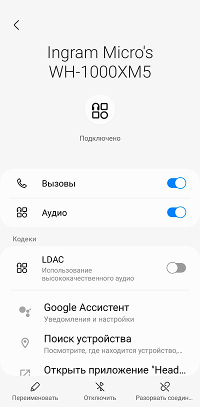 После установки и запуска приложения нужно включить наушники и приложение предложит их подключить. Обратите внимание, что по умолчанию наушники подключаются через кодек AAC (более устойчивое соединение), а не LDAC. И если вы хотите в наушниках слушать качественную музыку, то лучше включить кодек LDAC.