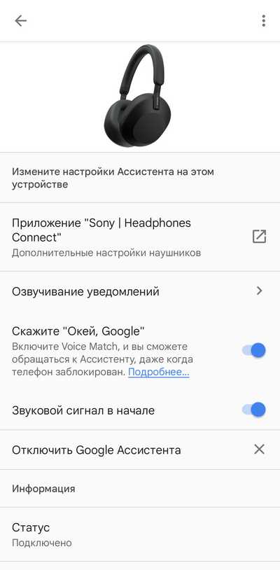 При первом подключении программа предлагает связать наушники с Ассистентом Гугла и сделать некоторые настройки (их, конечно, можно сделать и позднее).