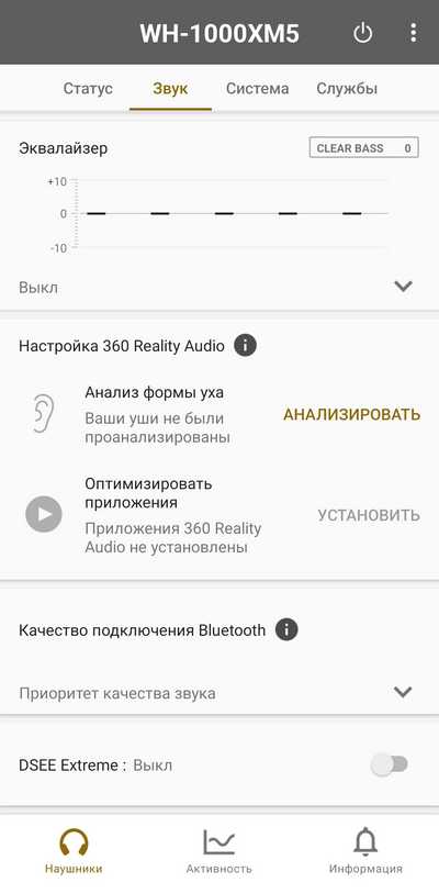 Также можно подключить технологию 360 Reality Audio, которая создает объем звукового пространства.