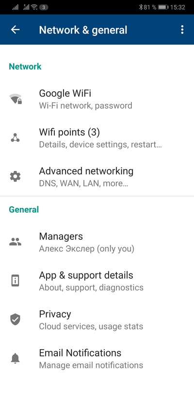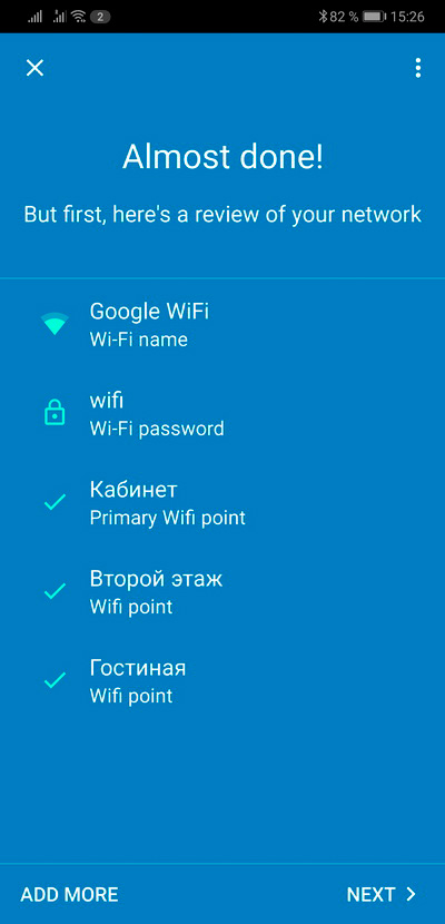 Google WiFi создает свою собственную сеть Wi-Fi, которая совершенно отдельная, то есть не имеет выхода в локальную сеть. Другого режима для нее, насколько я понял, не предусмотрено: я не смог подружить Google Wi-Fi с локальной сетью, она такая фактически вещь в себе.