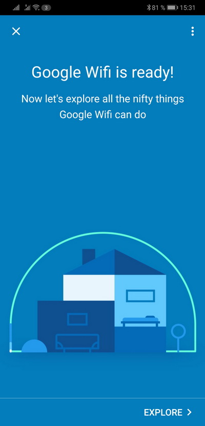На смартфон устанавливаете программу Google WiFi и запускаете ее - она начинает искать базовую точку доступа.
