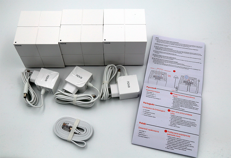 В комплекте - три точки доступа, три сетевых адаптера, сетевой кабель и инструкция.