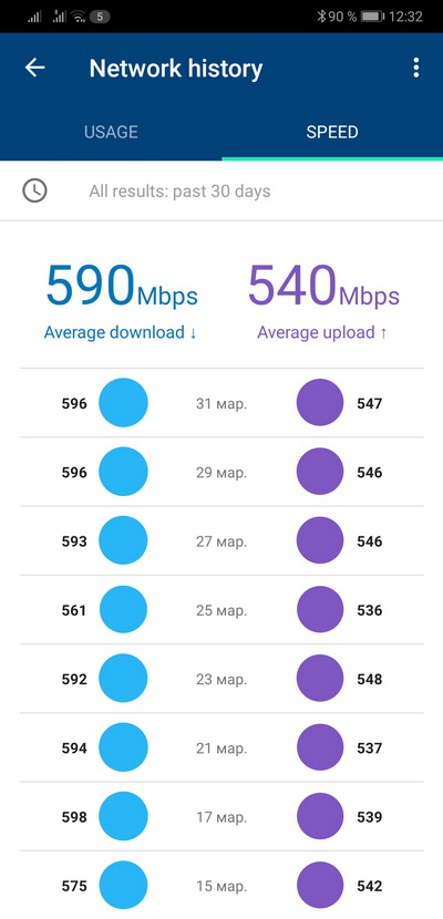 Когда был провайдет со скоростью 10 мб/с, на четвертом этаже выдавало 6—7 мб/с