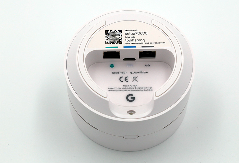 На нижней крышке - порт питания Type-C и два гигабитных порта. Один из них - WAN, к которому подключается кабель от роутера, второй порт - LAN.  (Это для основной точки, для остальных оба порта будут LAN.)