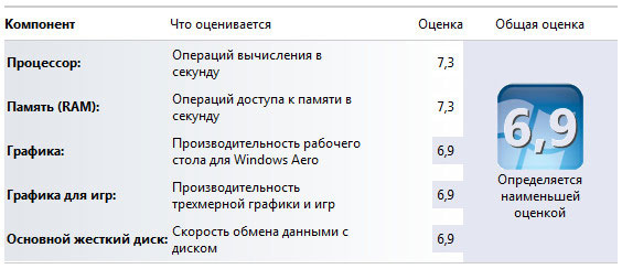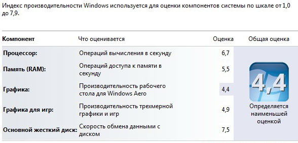 А вот индекс моего нетбука Acer Aspire 1810T, чьей скоростью работы я вполне доволен.