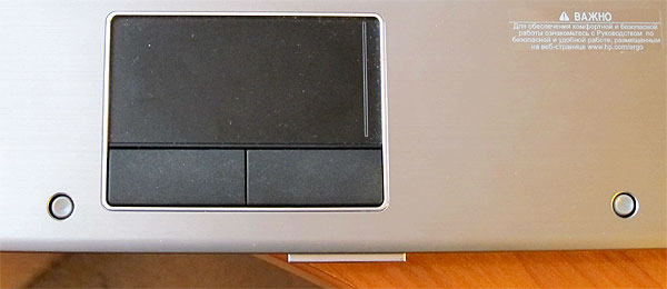Ноутбук снабжен не только тачпадом с двумя кнопками и зоной прокрутки, который вы видите на иллюстрации выше, но и миниатюрным джойстиком pointstick, у которого также есть две кнопки, расположенные под пробелом.