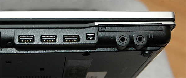 Порты: 3 USB 2.0, VGA-in, DisplayPort, вход для стереомикрофона, выход для стереонаушников/линейный, порт 1394a, RJ-45, разъем для подключения док-станции, разъем для дополнительной батареи