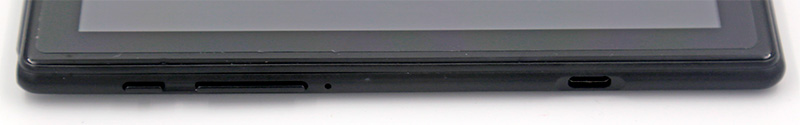 На левой грани: кнопка питания, регулировка громкости, микрофон, порт Type-C.
