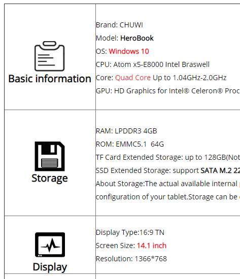 В обзоре дана ссылка именно на тот ноутбук, который я покупал. На Ali в спецификации в конце там ерунда всякая написана: платформа Atom x5-E8000 Intel braswell, разрешение 1366*768. Это бывает. Платформа здесь Intel Celeron N4100, разрешение FullHD, что легко видеть по всяким тестам.