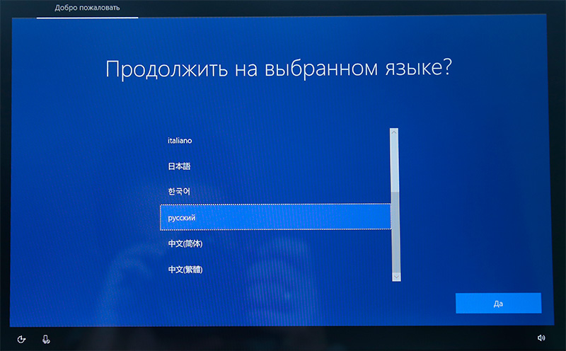 Здесь, в отличие от Xiaomi Mi Notebook Pro, никакие танцы с бубном и блуждания сквозь иероглифы не нужны: на первом же экране вам предлагается выбрать язык, русский (и остальные языки) поддерживается без всяких проблем.